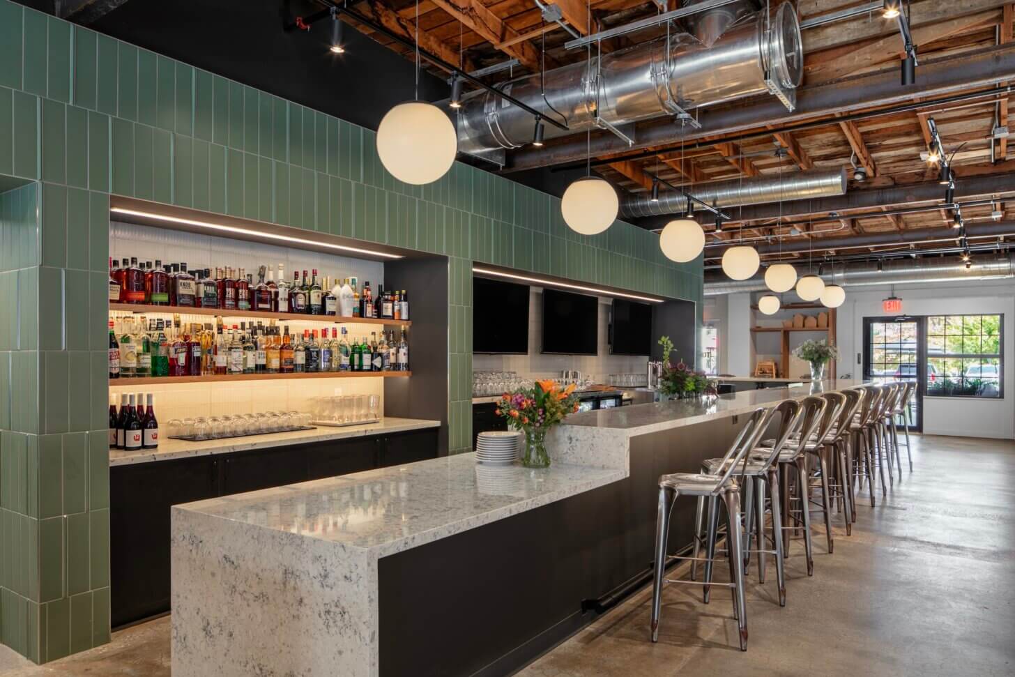 The progressive architecture of the new Bank OZK Headquarters represents the bank’s rapid national expansion, while grounded in this place. Two primary office volumes are linked by a 5 story atrium and bridged by a sweeping roof, reminiscent of the site’s rolling hills and mountainous surroundings. The atrium acts as a vertical center for collaboration and a visual link between two distinct green spaces. Offices and work spaces are positioned in a park-like setting instead of the typical sea of parking. Most parking is tucked under the building, creating a public engagement and approach through a sculpted, artistic landscape.