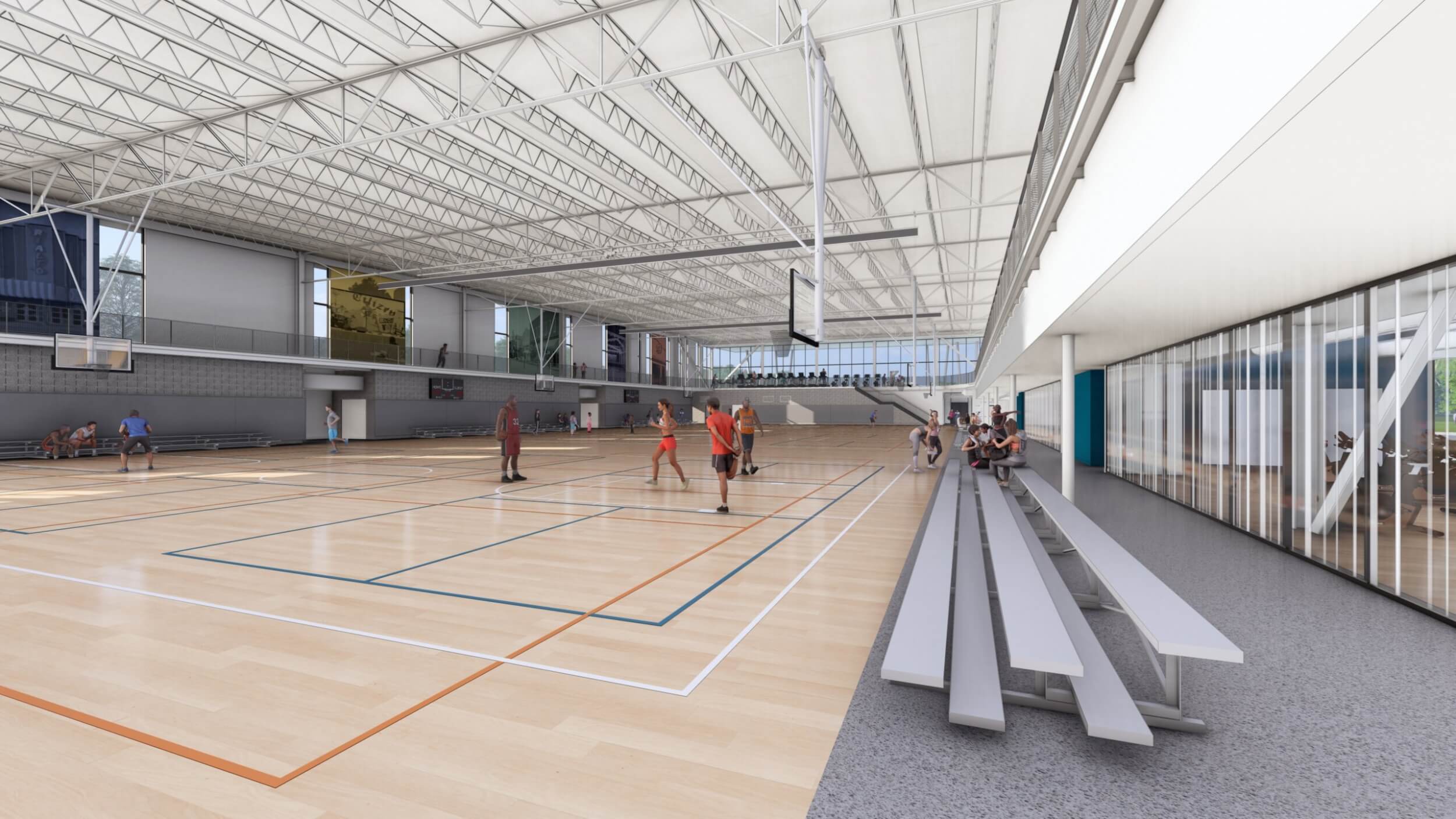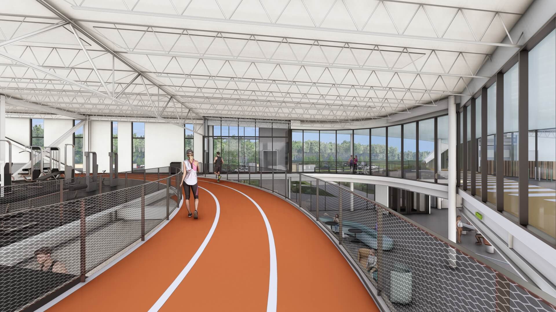 The center will feature indoor basketball courts that also serve pickleball and volleyball, an indoor walking track and climbing wall, exercise classes, a bike shop, and community meeting rooms for everything from maker space activities, a fantastic children’s play area treehouse-like loft, plus comfortable areas for seniors and a “Searcy store”. The roof extends to create an outdoor amphitheater for live events that interacts with scenic outdoor trails as well. We can’t wait for Searcy residents to experience all the opportunities this incredible new facility will bring.